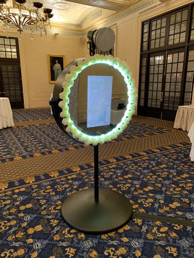 Putting a Wreath around The Mirror Booth for Weddings and other events really give your Photo Booth experience an elegant look.